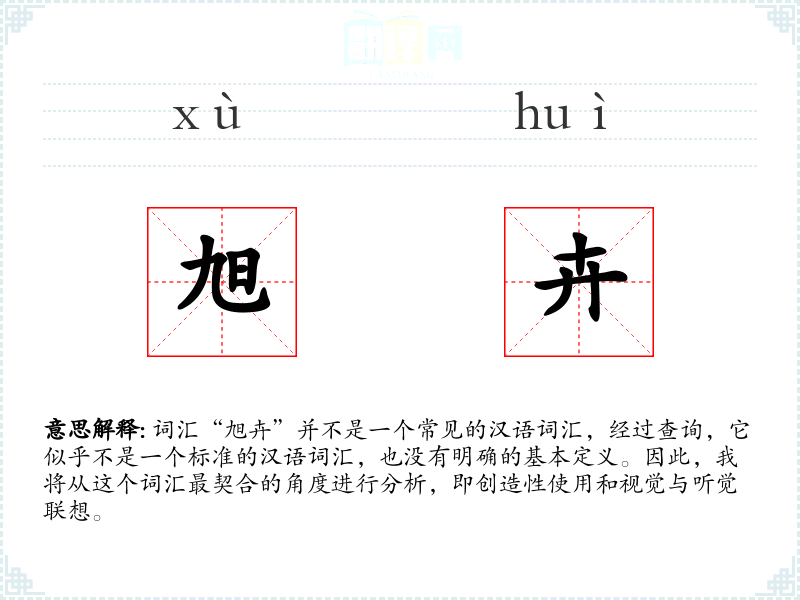 词汇“旭卉”并不是一个常见的汉语词汇,经过查询,它似乎不是一个标准的汉语词汇,也没有明确的基本定义。因此,我将从这个词汇最契合的角度进行分析,即创造性使用和视觉与听觉联想。