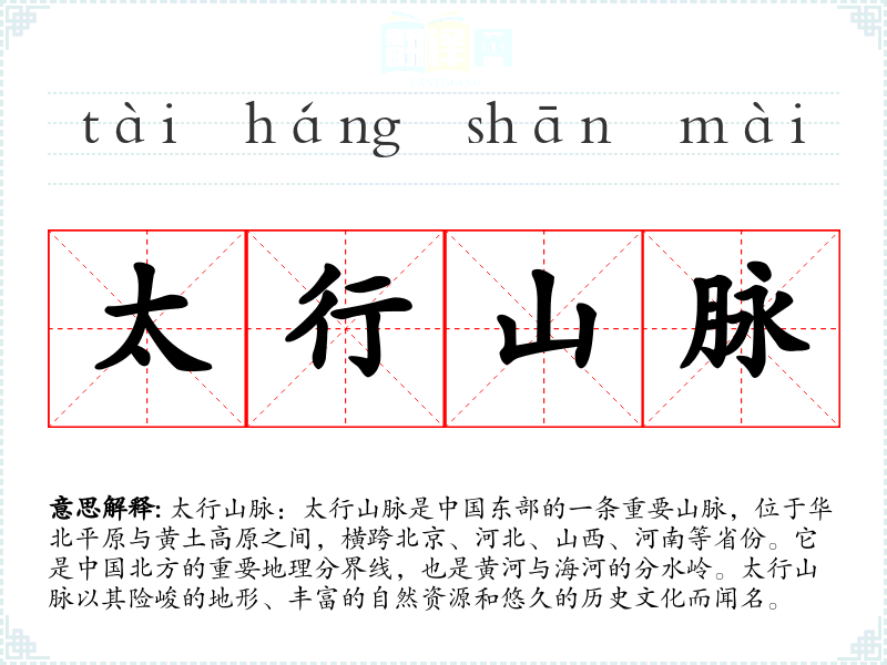 太行山脉的分字解释