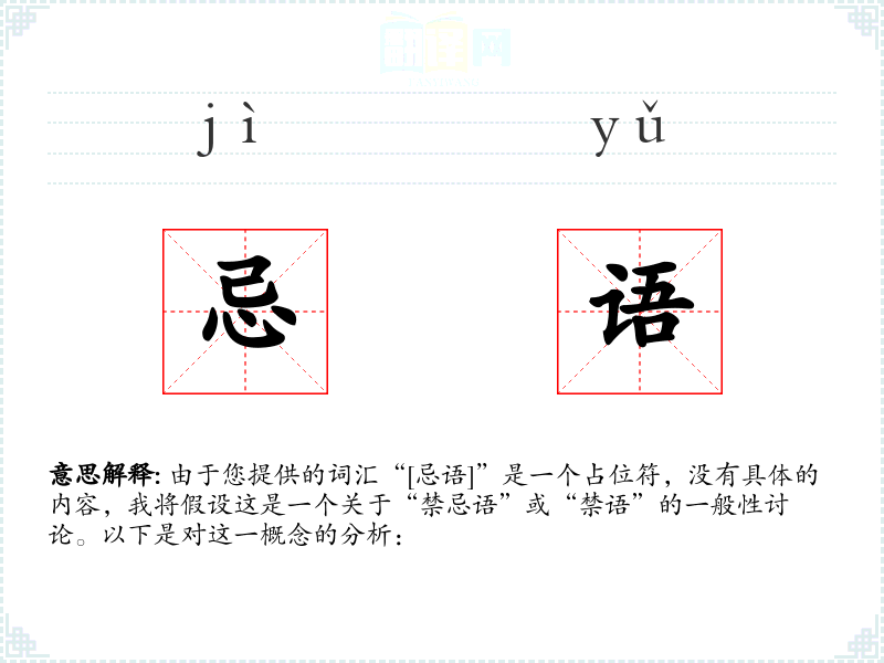 由于您提供的词汇“[忌语]”是一个占位符,没有具体的内容,我将假设这是一个关于“禁忌语”或“禁语”的一般性讨论。以下是对这一概念的分析: