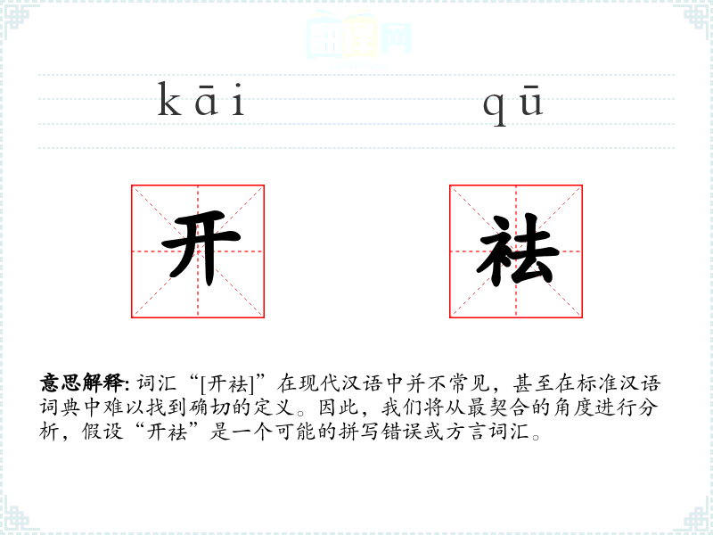 词汇“[开袪]”在现代汉语中并不常见,甚至在标准汉语词典中难以找到确切的定义。因此,我们将从最契合的角度进行分析,假设“开袪”是一个可能的拼写错误或方言词汇。