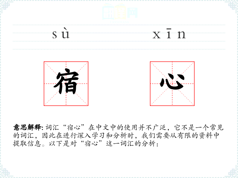 - 反义词:无(由于“宿心”不是一个常用词汇,反义词难以确定)
