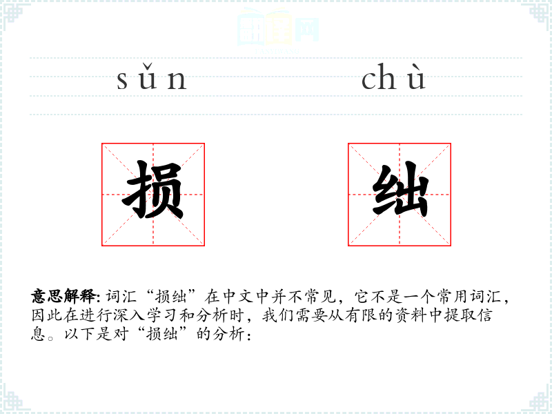 词汇“损绌”在中文中并不常见,它不是一个常用词汇,因此在进行深入学习和分析时,我们需要从有限的资料中提取信息。以下是对“损绌”的分析: