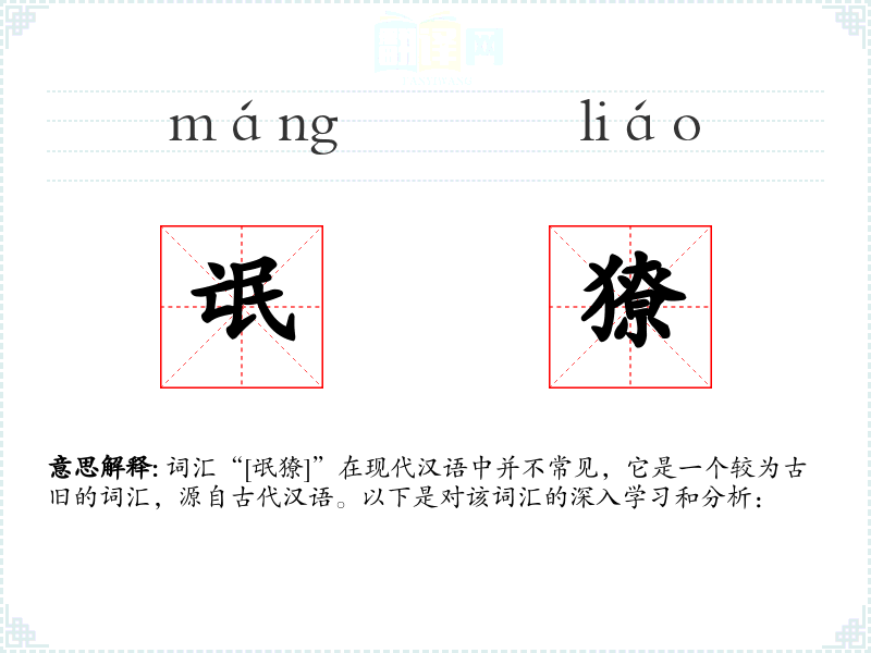 词汇“[氓獠]”在现代汉语中并不常见,它是一个较为古旧的词汇,源自古代汉语。以下是对该词汇的深入学*和分析:
