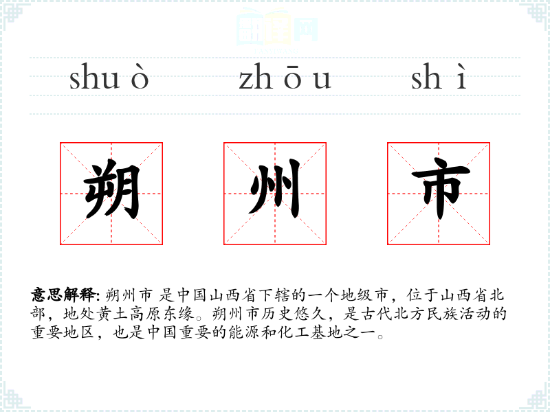- 反义词:无特定反义词,但可以与其他城市名称对比,如“朔州市”与“广州市”在气候、地理位置等方面形成对比。