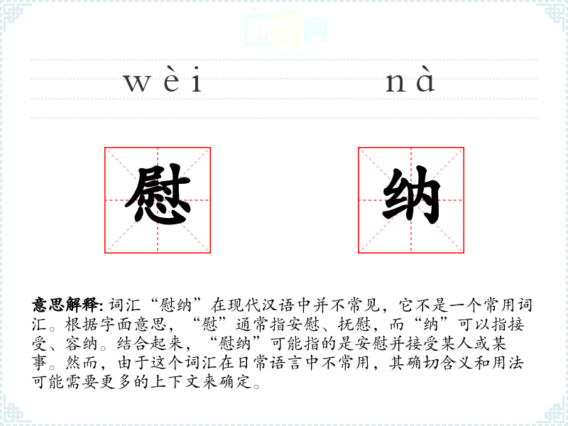 - 由于“慰纳”不是一个常用词汇,其在不同语言或文化中的对应词汇可能不明确。