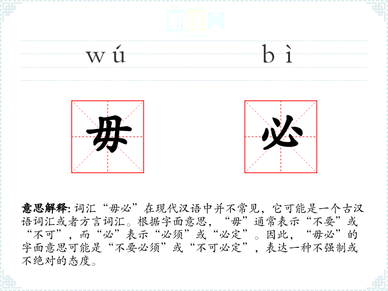 “毋必”的基本含义可能是一种建议或态度,即不强制要求某事必须发生或必须以某种方式发生。它传达了一种灵活性和非绝对性的立场。