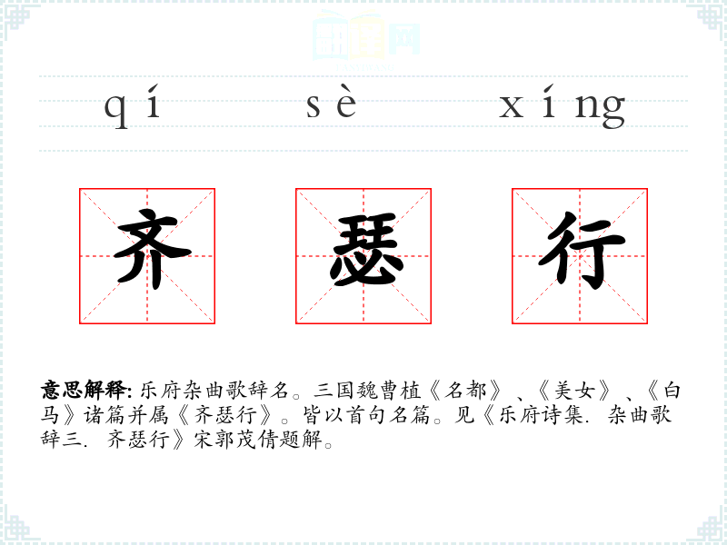 "齐瑟行"的意思解释、齐瑟行是什么意思由翻译网汉语词典查词提供。