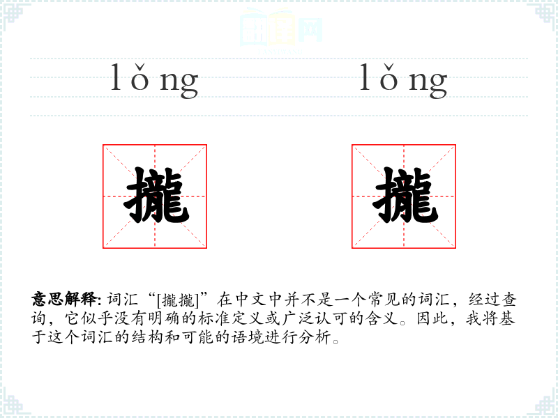 由于“[攏攏]”不是一个标准词汇,我们无法对其进行深入的分析和总结。在语言学习和表达中,了解和使用标准词汇是非常重要的,这有助于确保沟通的清晰和有效。如果遇到不熟悉的词汇,建议查阅权威的词典或资料,以确保准确理解其含义和用法。