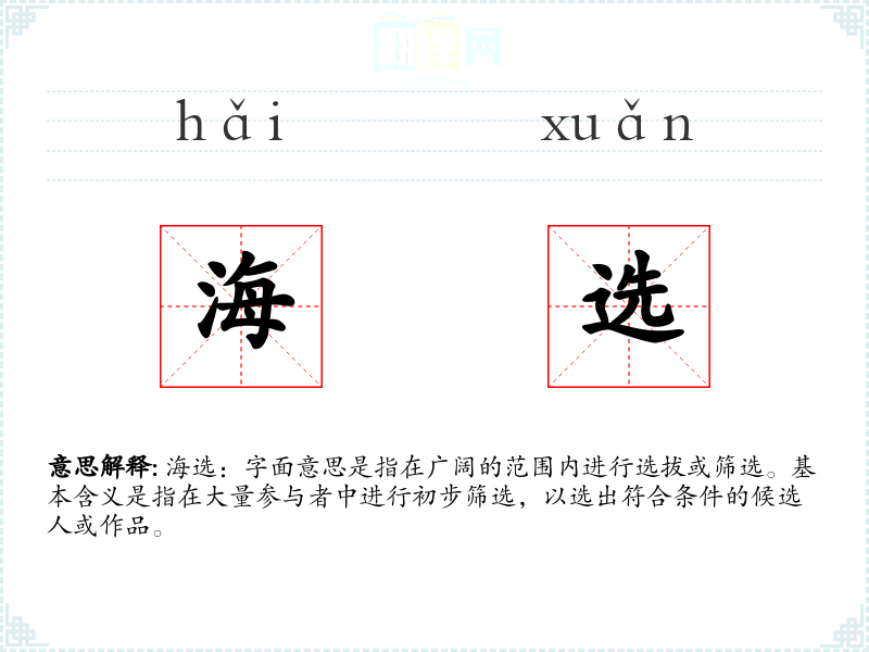 "海选"的意思解释、海选是什么意思由翻译网汉语词典查词提供。