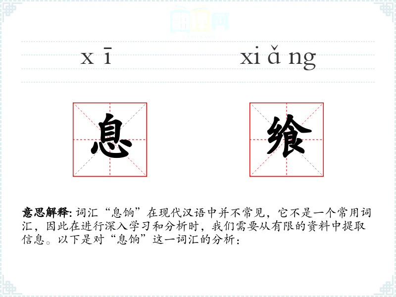 词汇“息饷”在现代汉语中并不常见,它不是一个常用词汇,因此在进行深入学习和分析时,我们需要从有限的资料中提取信息。以下是对“息饷”这一词汇的分析: