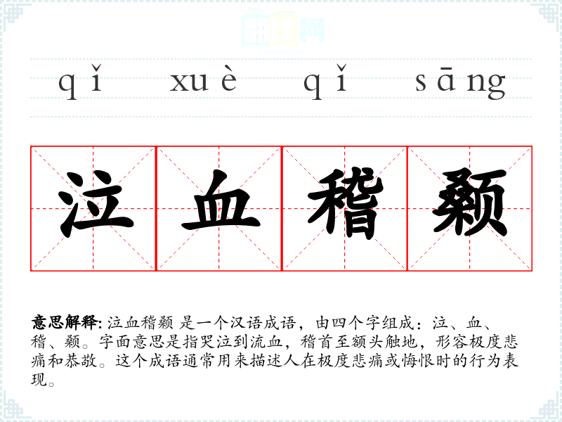 在文化中,泣血稽颡** 体现了儒家文化中对于悔过和悲痛的重视。它不仅是一种情感的表达,也是一种道德和礼仪的体现。在社会背景中,这个成语常被用来描述个人在面对重大道德或情感挑战时的反应。