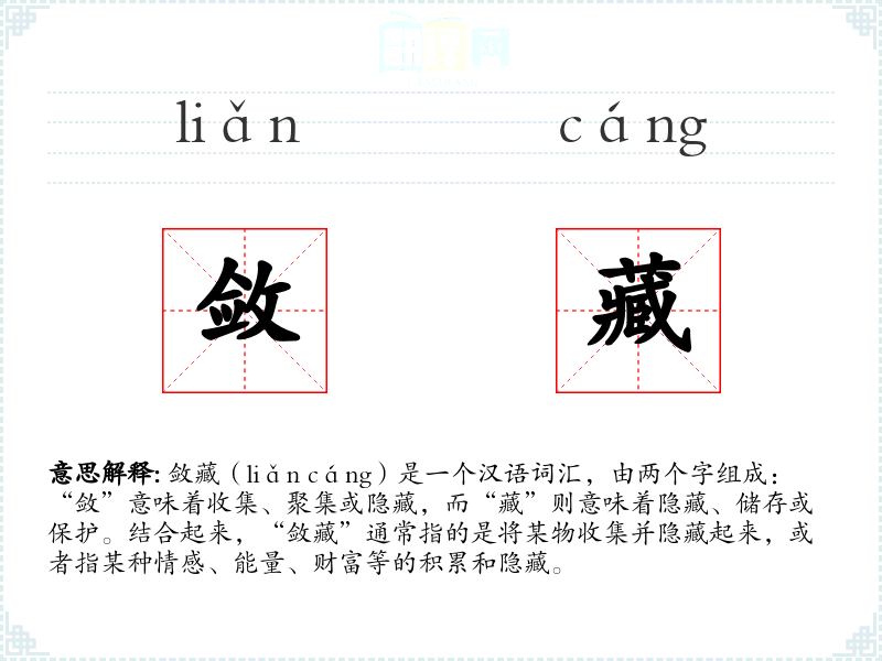 “敛藏”一词的词源较为直接,由“敛”和“藏”两个字组成,这两个字在古代汉语中就已经存在,并且含义相对稳定。随着时间的推移,这两个字的组合在现代汉语中仍然保持着其基本的意义。