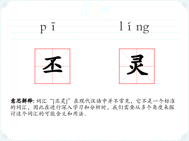 词汇“[丕灵]”在现代汉语中并不常见,它不是一个标准的词汇,因此在进行深入学习和分析时,我们需要从多个角度来探讨这个词汇的可能含义和用法。