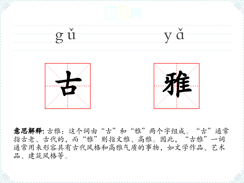 - 同义词:古典、典雅、古朴、古风