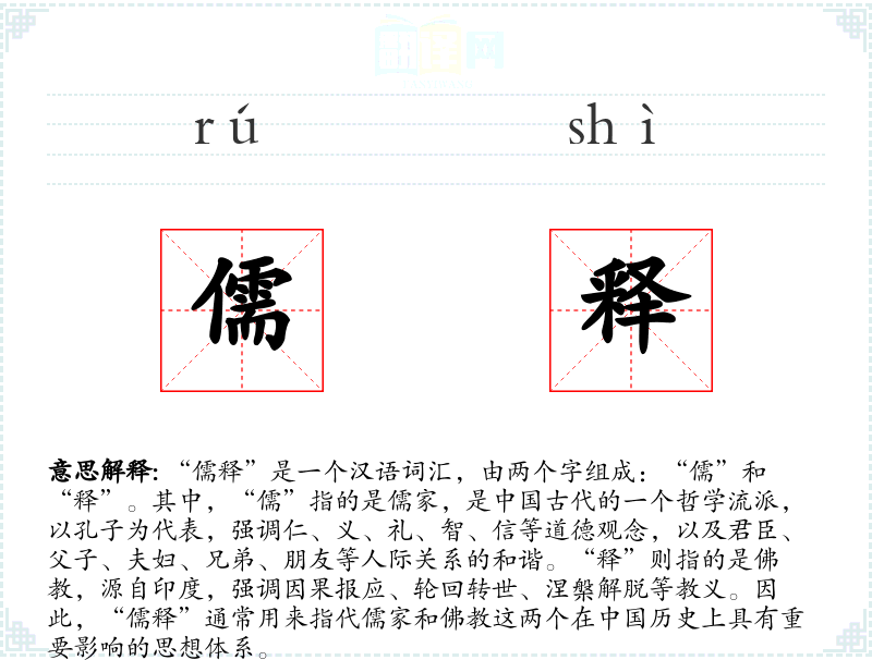 - 文学语境:在文学作品中,“儒释”可能被用来描述人物的思想背景,或者作为文化冲突和融合的象征。