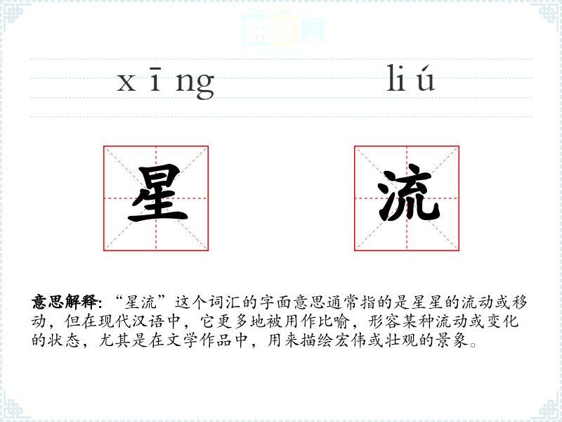 - 反义词:静止、固定(这些词汇与“星流”的流动性质形成对比)