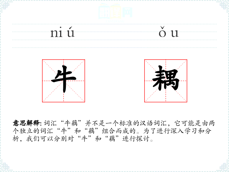 通过对“牛”和“藕”的分析,我们可以看到这两个词汇在汉语中都有着丰富的文化内涵和实际应用。在语言学*和表达中,了解这些词汇的背景和用法,可以帮助我们更准确地理解和使用它们,丰富我们的语言表达能力。