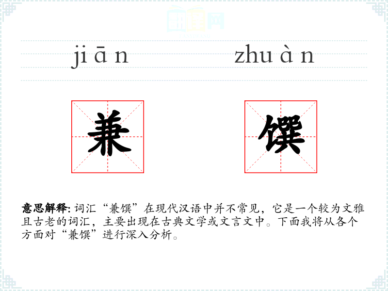 词汇“兼馔”在现代汉语中并不常见,它是一个较为文雅且古老的词汇,主要出现在古典文学或文言文中。下面我将从各个方面对“兼馔”进行深入分析。