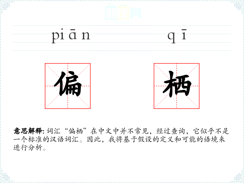 由于“偏栖”不是一个通用词汇,它在不同语言或文化中的对应词汇可能不存在,或者需要根据具体语境来翻译。
