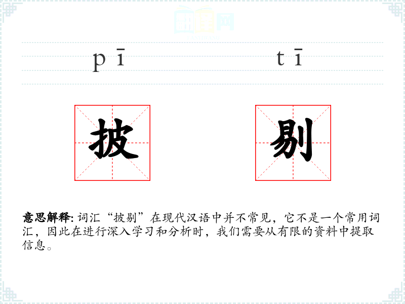 词汇“披剔”在现代汉语中并不常见,它不是一个常用词汇,因此在进行深入学习和分析时,我们需要从有限的资料中提取信息。
