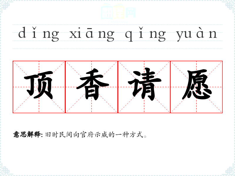 顶香请愿的分字解释