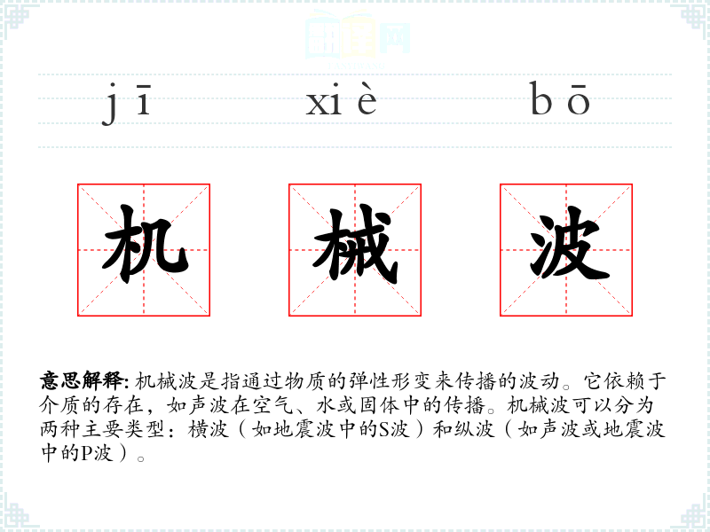 “机械波”一词源于对物理现象的描述,其中“机械”指的是与机器或物理力相关的,而“波”则是指波动或振荡。这个概念在19世纪随着物理学的发展而得到明确和广泛应用。