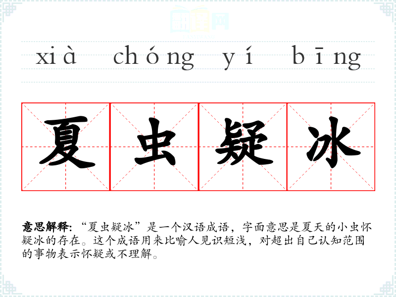 "夏虫疑冰"的意思解释、夏虫疑冰是什么意思由翻译网汉语词典查词提供。