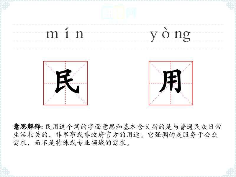 民用这个词的字面意思和基本含义指的是与普通民众日常生活相关的,非军事或非政府官方的用途。它强调的是服务于公众需求,而不是特殊或专业领域的需求。