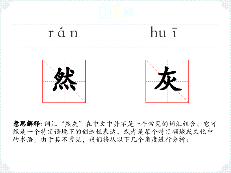 词汇“然灰”在中文中并不是一个常见的词汇组合,它可能是一个特定语境下的创造性表达,或者是某个特定领域或文化中的术语。由于其不常见,我们将从以下几个角度进行分析: