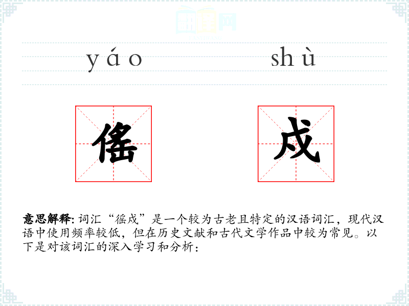 词汇“徭戍”是一个较为古老且特定的汉语词汇,现代汉语中使用频率较低,但在历史文献和古代文学作品中较为常见。以下是对该词汇的深入学*和分析:
