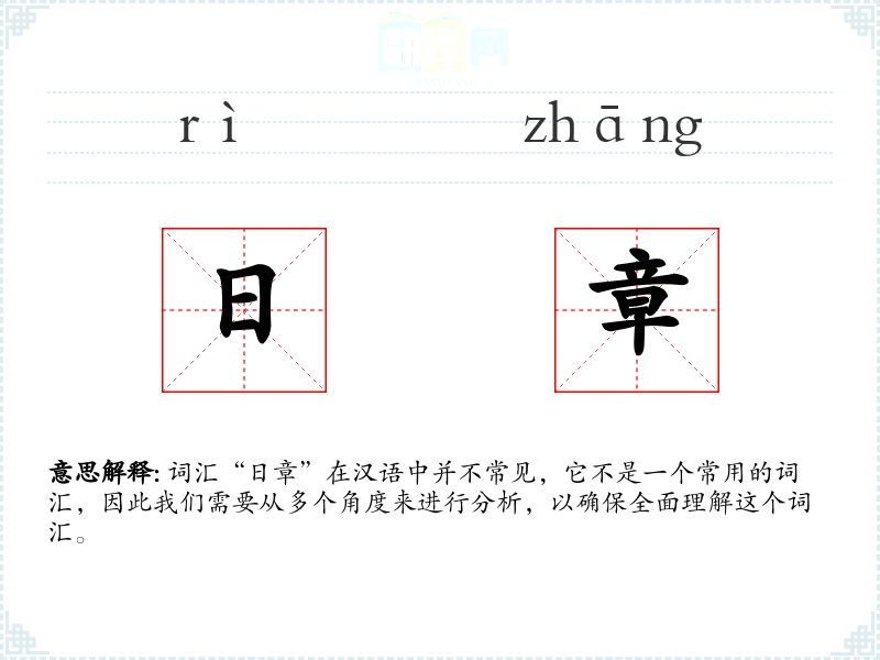 词汇“日章”在汉语中并不常见,它不是一个常用的词汇,因此我们需要从多个角度来进行分析,以确保全面理解这个词汇。
