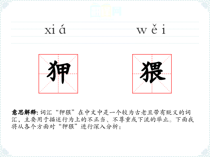 - 文学:在古典文学中,“狎猥”可能出现在描述不道德或不正当行为的场景中,如《红楼梦》中对贾琏的行为描述。