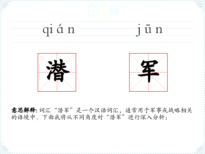 - 专业领域:在军事战略和战术讨论中,“潜军”是一个专业术语,用于描述具体的军事行动。