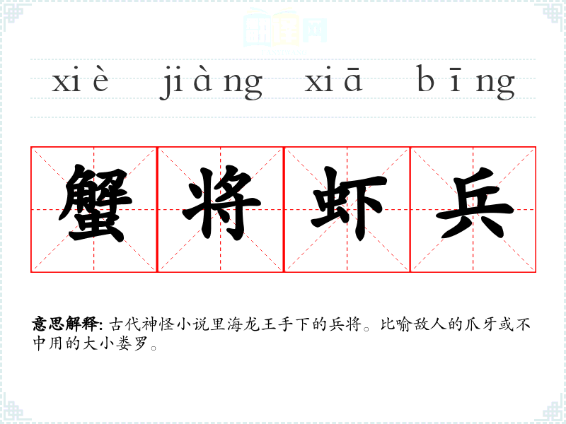 古代神怪小说里海龙王手下的兵将。比喻敌人的爪牙或不中用的大小娄罗。