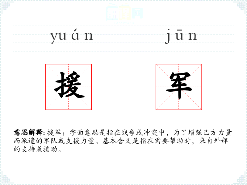 "援军"的意思解释、援军是什么意思由翻译网汉语词典查词提供。