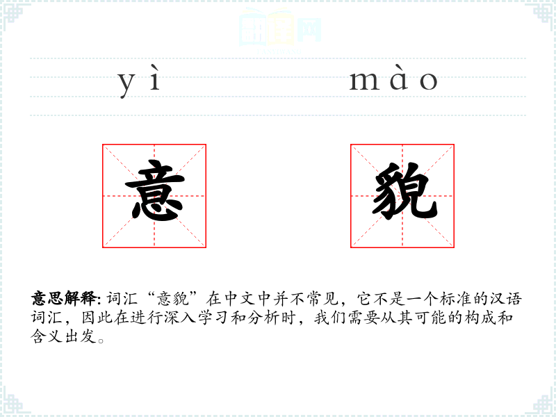 词汇“意貌”在中文中并不常见,它不是一个标准的汉语词汇,因此在进行深入学习和分析时,我们需要从其可能的构成和含义出发。