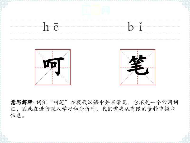 词汇“呵笔”在现代汉语中并不常见,它不是一个常用词汇,因此在进行深入学*和分析时,我们需要从有限的资料中提取信息。