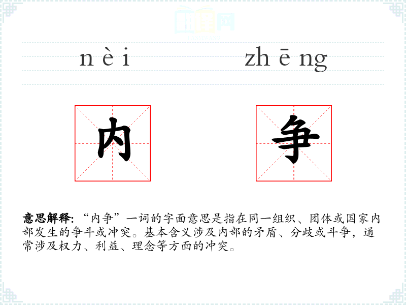- 专业领域:在政治学或社会学中,“内争”可能特指政治团体或国家内部的权力斗争。