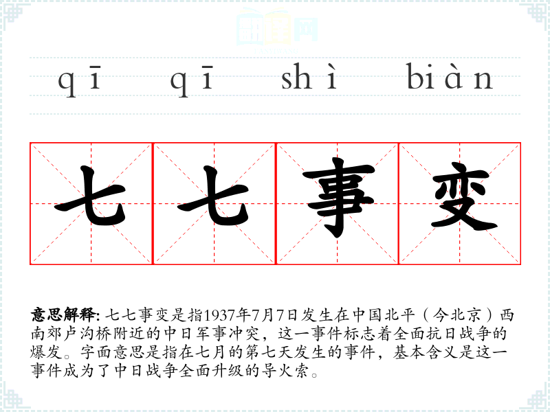 "七七事变"的意思解释、七七事变是什么意思由翻译网汉语词典查词提供。