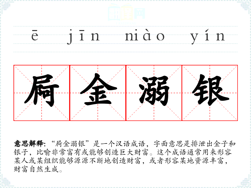 “屙金溺银”是一个汉语成语,字面意思是排泄出金子和银子,比喻非常富有或能够创造巨大财富。这个成语通常用来形容某人或某组织能够源源不断地创造财富,或者形容某地资源丰富,财富自然生成。