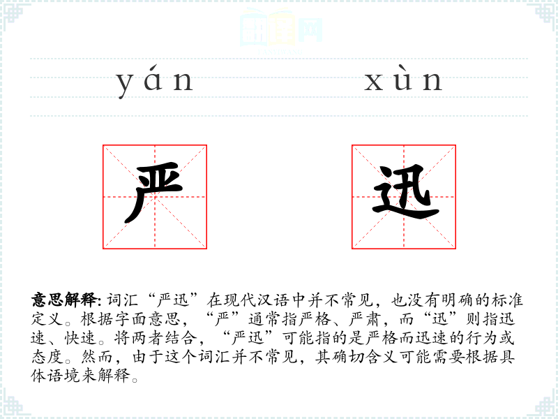 由于“严迅”不是一个国际通用的词汇,它在不同语言或文化中的对应词汇可能不存在。