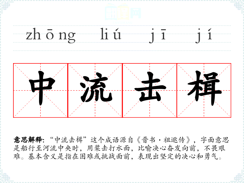 “中流击楫”这个成语源自《晋书·祖逖传》,字面意思是船行至河流中央时,用桨击打水面,比喻决心奋发向前,不畏艰难。基本含义是指在困难或挑战面前,表现出坚定的决心和勇气。