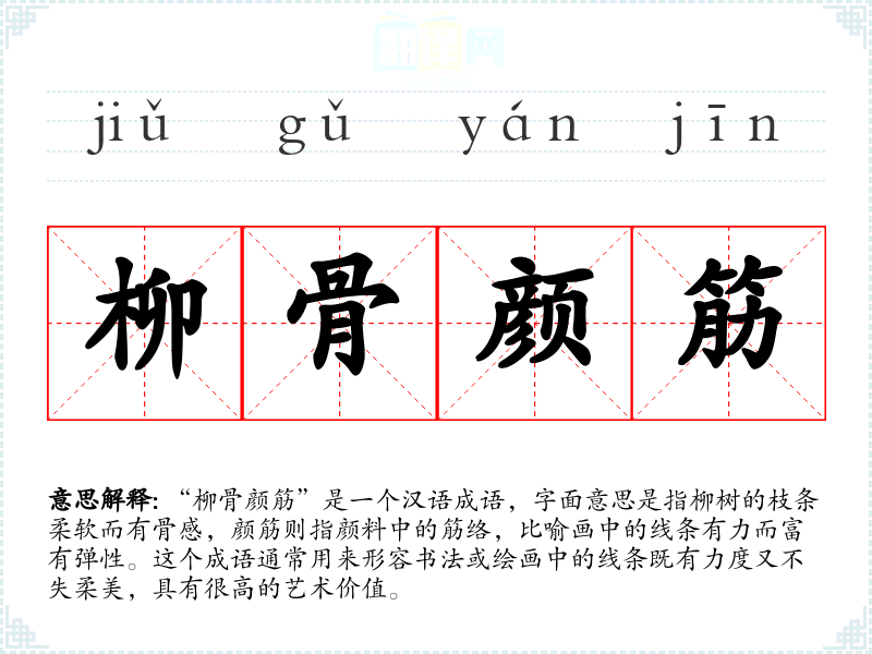 “柳骨颜筋”这个成语源自中国古代对书法和绘画艺术的审美标准,强调线条的力度与柔美的结合。随着时间的推移,这个成语逐渐被用来形容任何具有艺术美感的线条或形态。