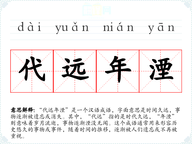 - dài yuǎn nián yān代远年湮