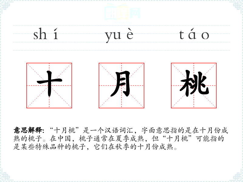 "十月桃"的意思解释、十月桃是什么意思由翻译网汉语词典查词提供。