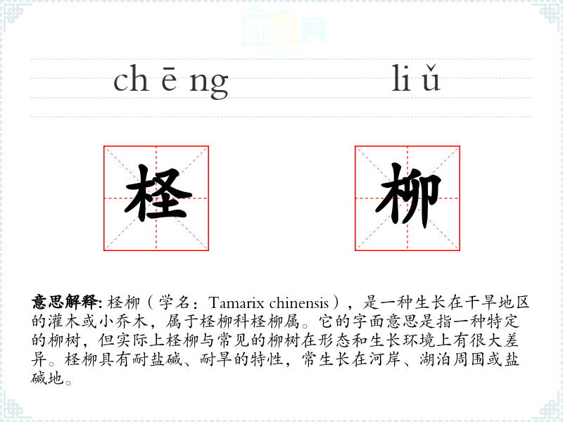 同义词强调了柽柳的生存特性,而反义词则突出了柽柳与水生或喜湿植物的对比。