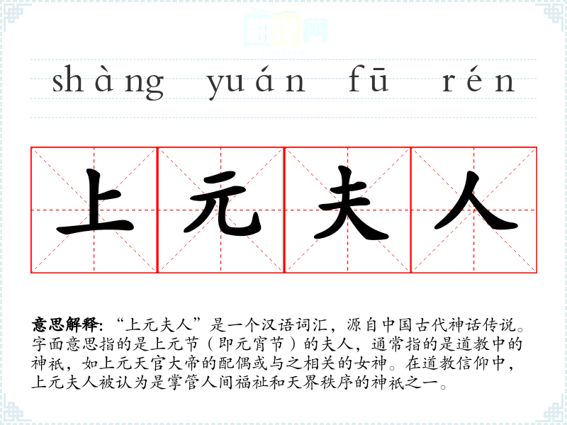 - 同义词:上元女神、天官夫人(都指与上元天官大帝相关的女神)