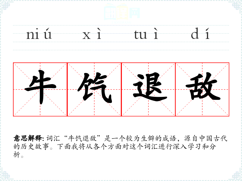 词汇“牛饩退敌”是一个较为生僻的成语,源自*古代的历史故事。下面我将从各个方面对这个词汇进行深入学和分析。
