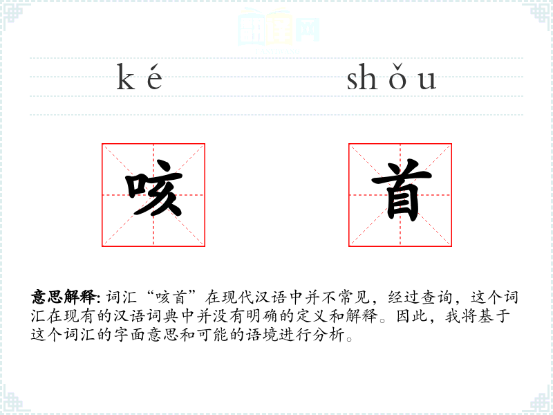 由于“咳首”不是一个常用词汇,其在不同语言或文化中的对应词汇及其使用情况不详。