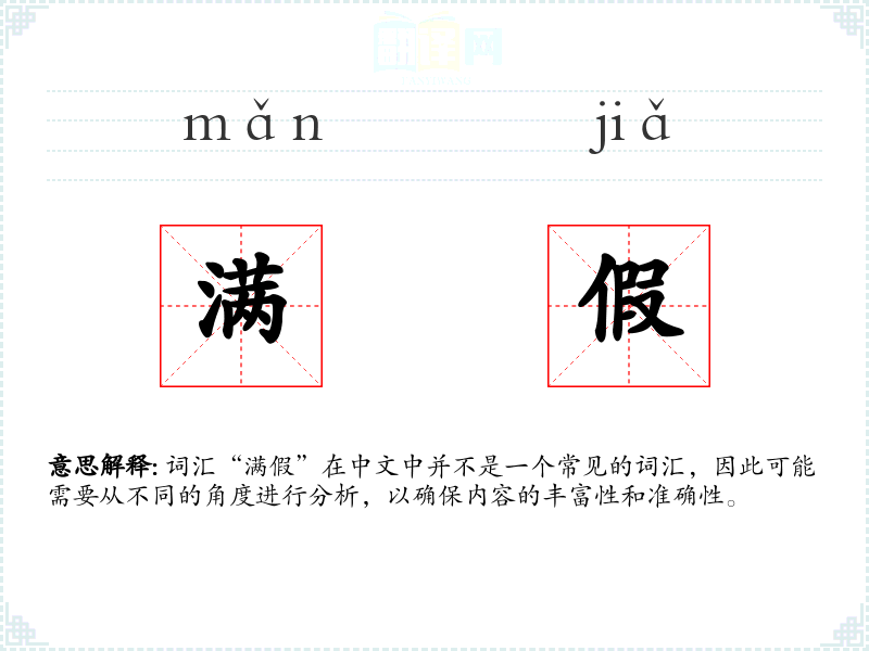 “满假”这个词汇在中文中并不常见,它的使用和理解可能需要特定的语境和解释。在语言学习和表达中,了解和掌握常用词汇更为重要。